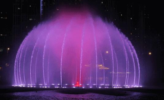 現代噴泉愛和光線和音樂的配合越來越完善